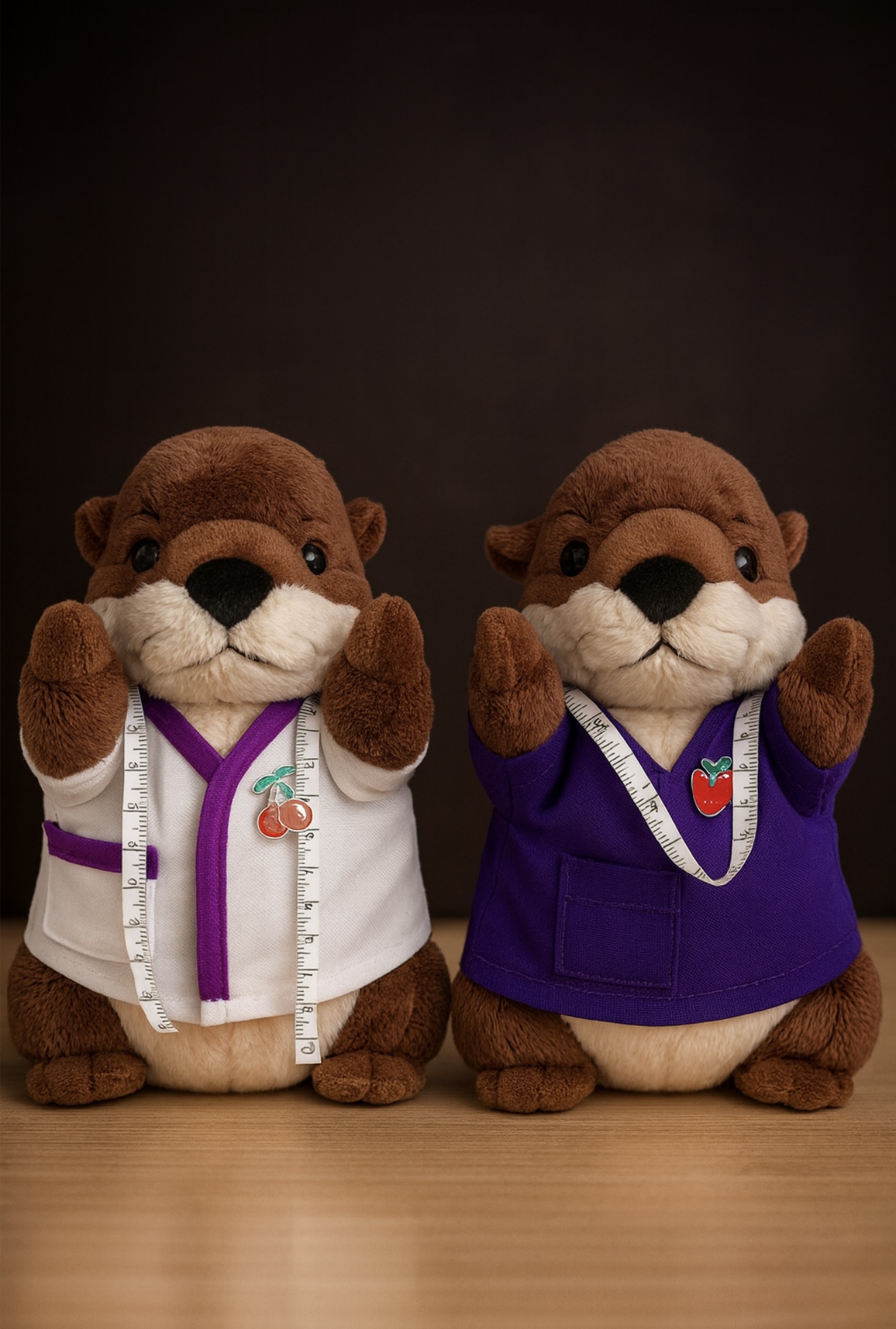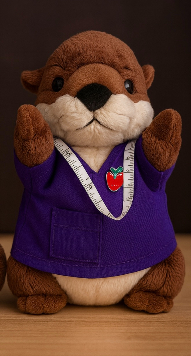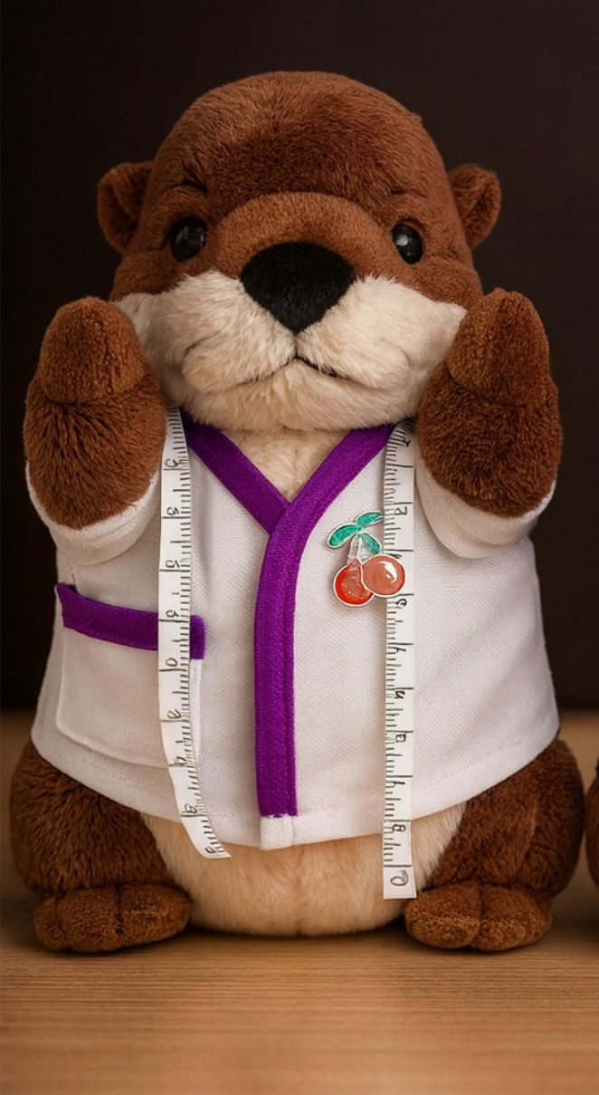 🧸 1 nutria de peluche con su delantal (blanco o morado)