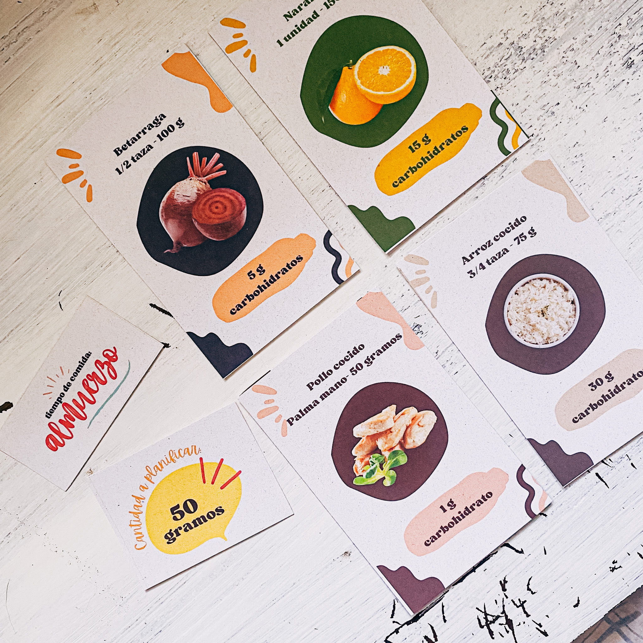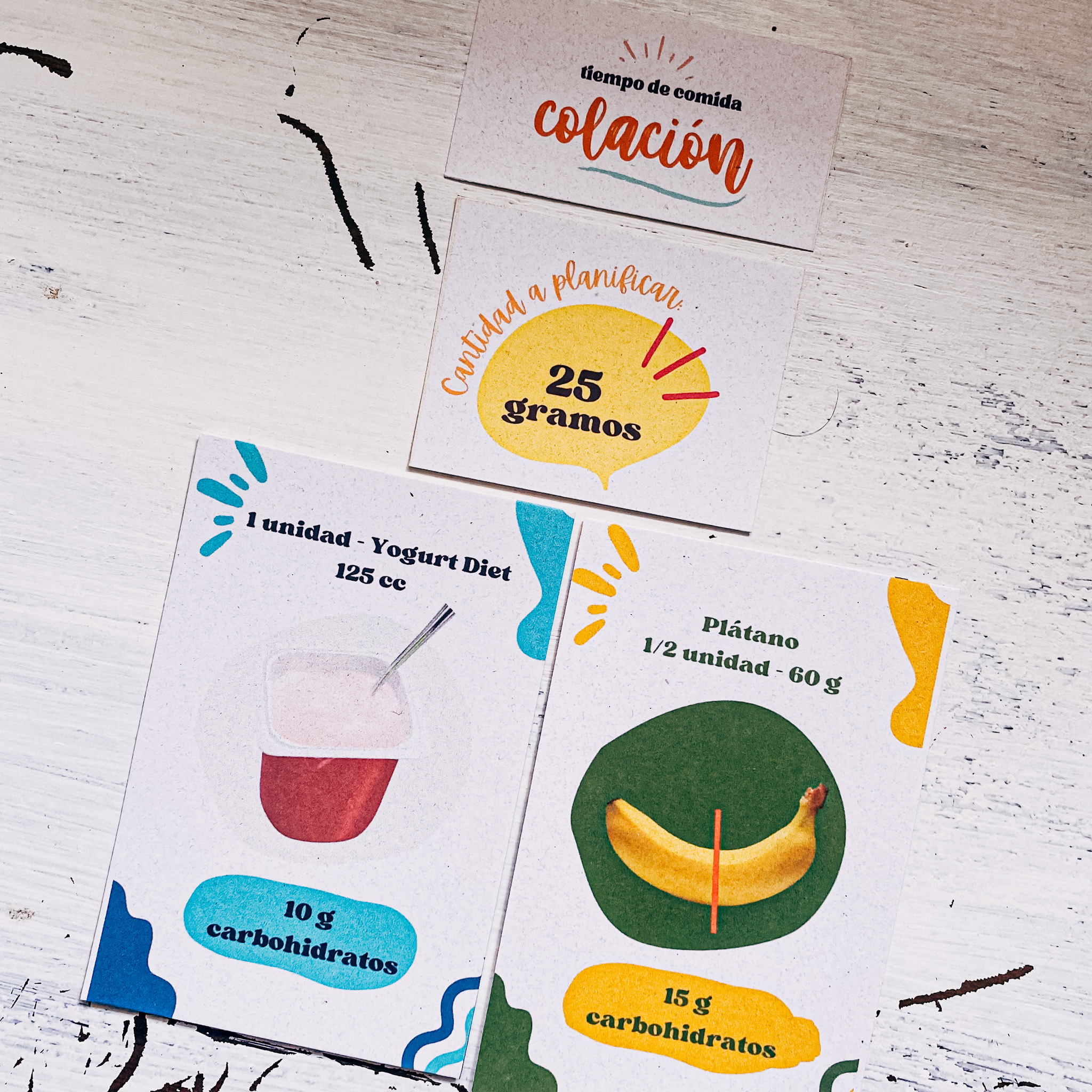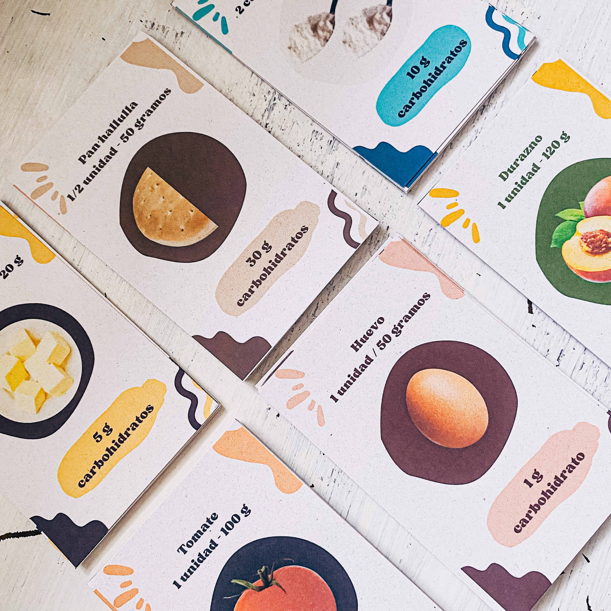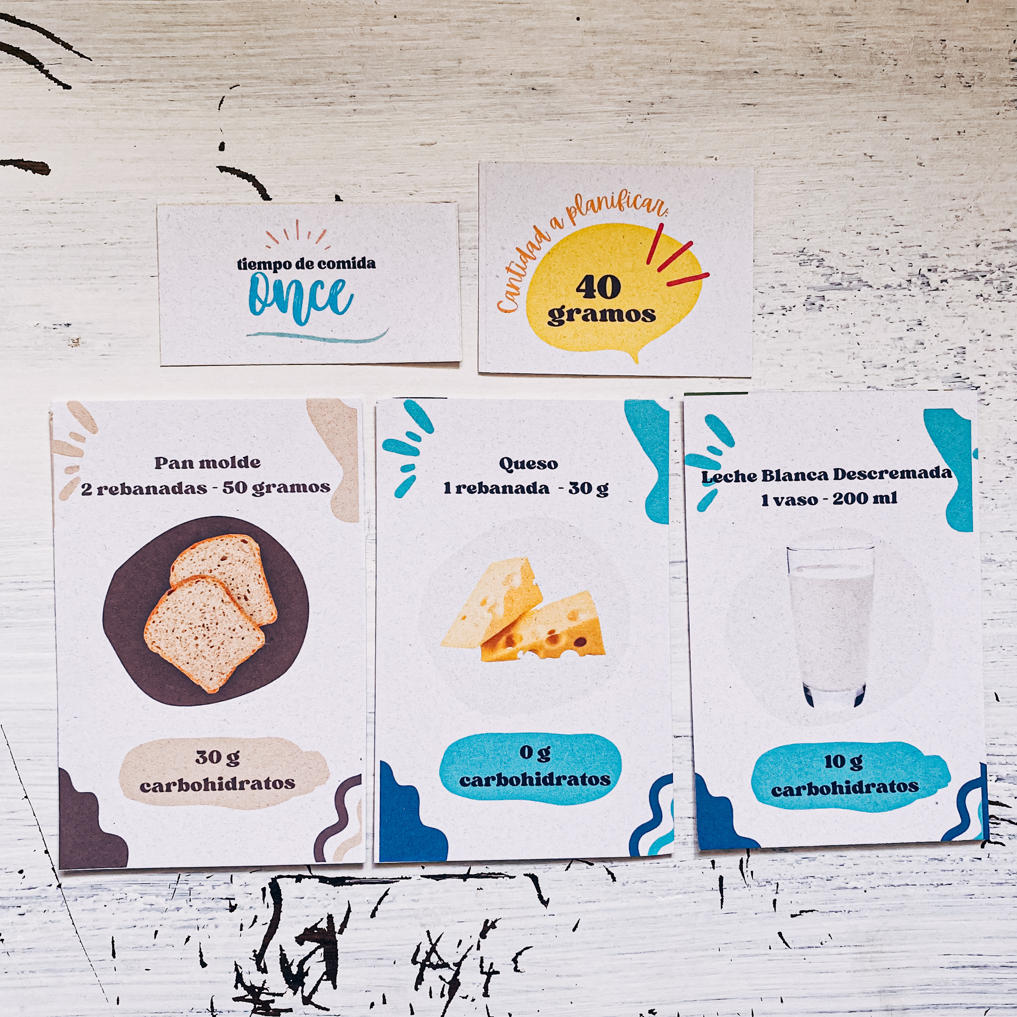 1. Las laminas de alimentos por si sola para educar en cuanto a cantidad de carbohidratos por alimento.